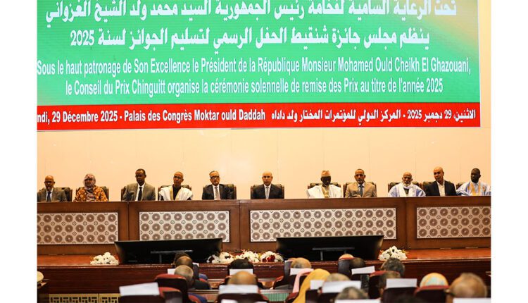 Son Excellence le Président de la République, M. Mohamed Ould Cheikh El Ghazouani, a supervisé lundi, au Centre international de conférences « Mokhtar Ould Daddah », la cérémonie de remise des prix Chinguitti pour l’année 2025.